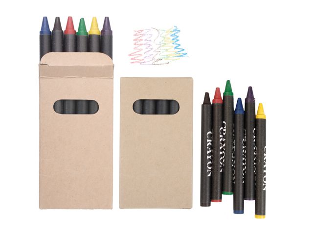 Set compus din 6 creioane colorate cerate ambalate intr-o cutie de carton.