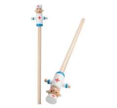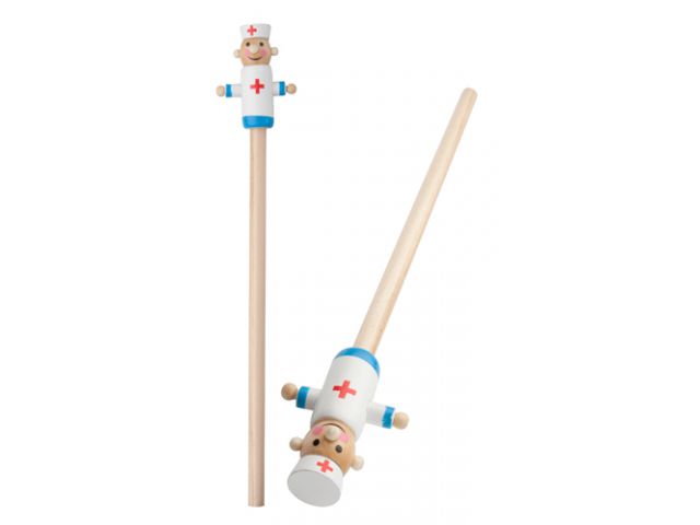 Creion din lemn natur cu figurina doctor la unul din capete.