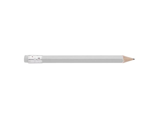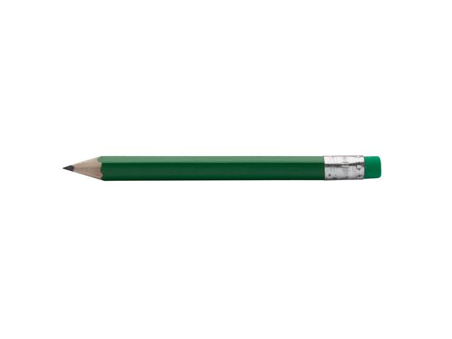 Creion mini, cu radiera colorata in culoarea creionului si cu mina neagra.