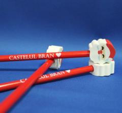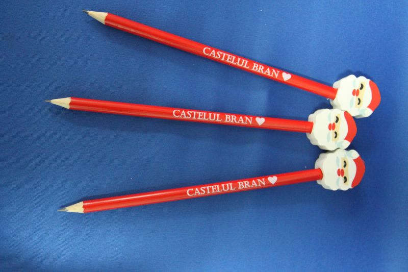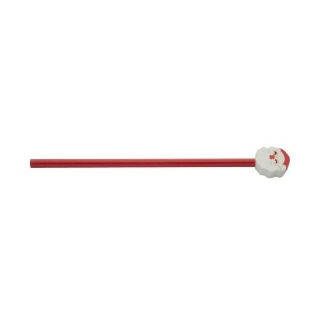 Creion "Namsos" de culoare rosie cu radiera in forma de Mos Craciun.