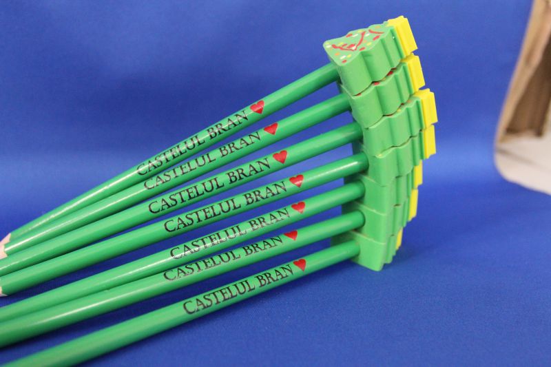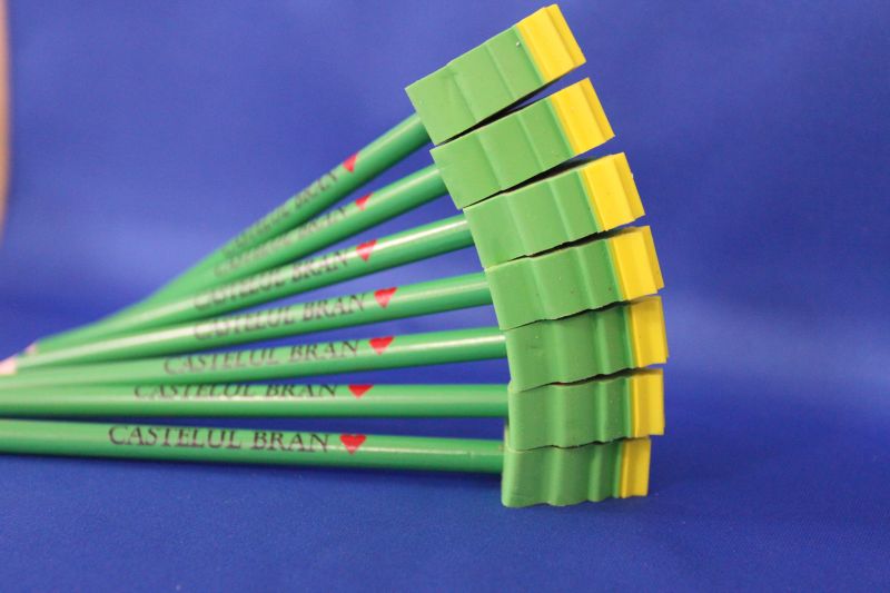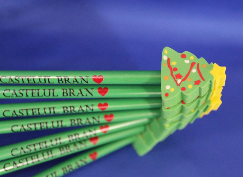 Creion HB "Namsos" de culoare verde cu radiera in forma de brad.