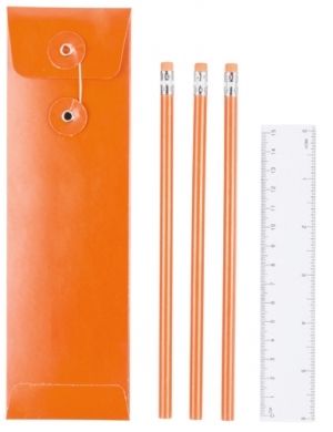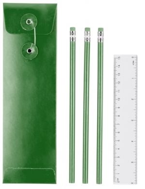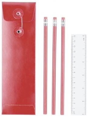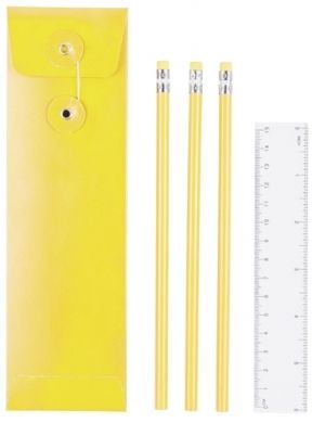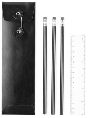 Set "Laptan" de 3 creioane si o rigla in etui colorat din carton.