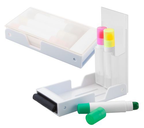 Set trei evidentiatoare "Triple" de culoari diferite : roz, galben si verde. Acestea sunt intr-un suport din plastic care are in dotare curatator pentru display si serveste ca suport pentru telefon mobil.