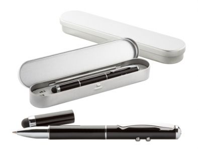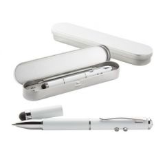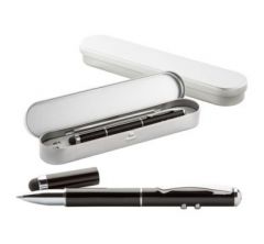 Pix "Keynote" cu laser si varf special pentru touch screen. Pixul este intr-o cutie metalica. Se livreaza cu mina albastra si baterii.