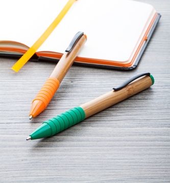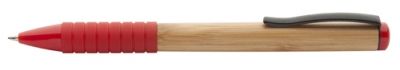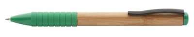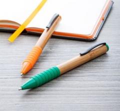 Pix "Bripp" din bambus cu clips din metal si grip colorat. Pixul are pasta de culoare albastra.