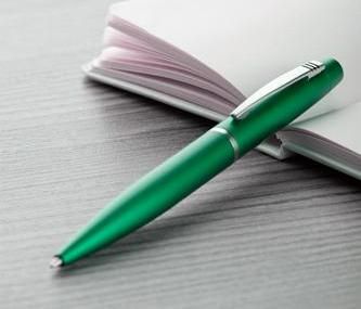 Pixuri metalice colorate, cu mecanism de deschidere prin rasucire, cu clips, varf si decoratii argintii. Se livreaza cu pasta albastra.