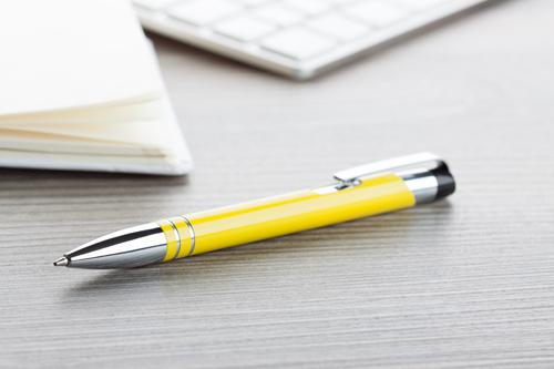 Pixuri Fokus din metal cu detalii cromate. Pixurile au pasta de culoare albastra.