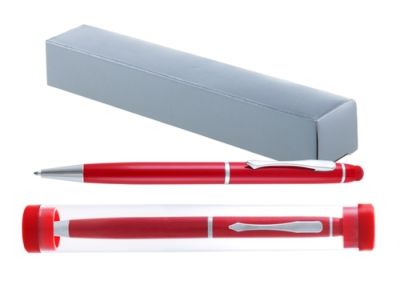 Pix "Bolcon" din aluminiu cu capat special pentru touch screen. Pixul se regaseste intr-un suport transparent. Mina este de culoare albastra.