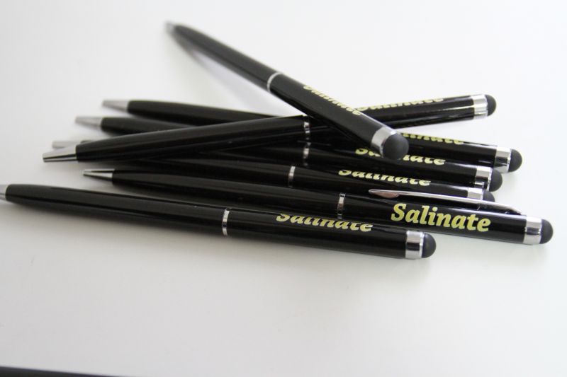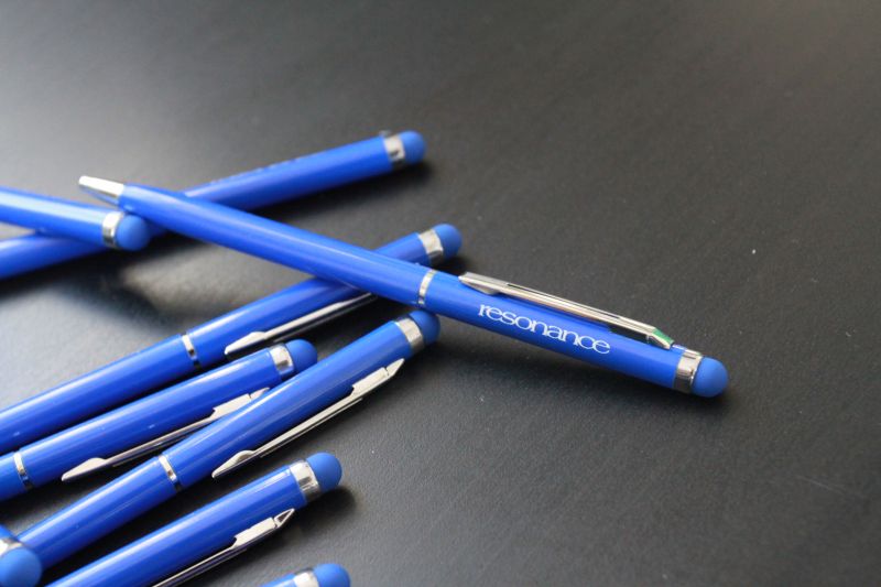 Pix "Byzar" din aluminiu, cu stylus pentru touch screen. Pixul are corp colorat si mina de culoare albastra.