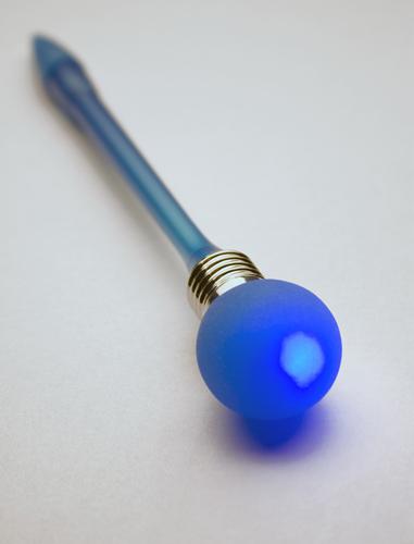 Pix "Nicky" din plastic cu o minge moale in capat iar in interior cu LED-uri colorate cu senzori de miscare. Se livreaza cu mina albastra si 3 baterii.