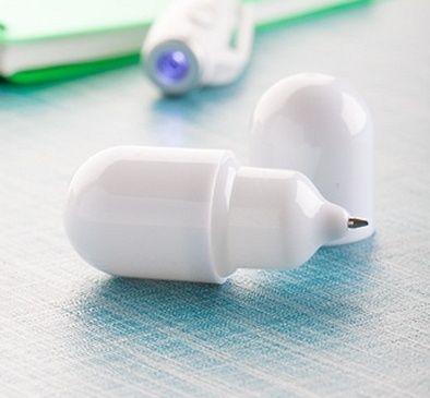 Pix din plastic in forma de capsula, pixul este perfect pentru promovarea produselor din industria medicamentelor. Mina pixului este albastra.