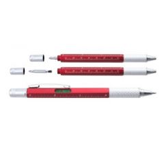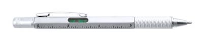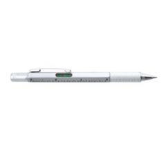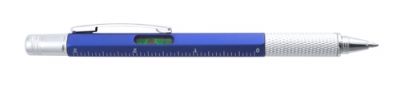 Pix "Sauris" multifunctional, din plastic cu surubelnita, cumpana si rigla de 7 cm. Pixul are mina albastra.