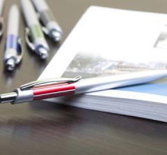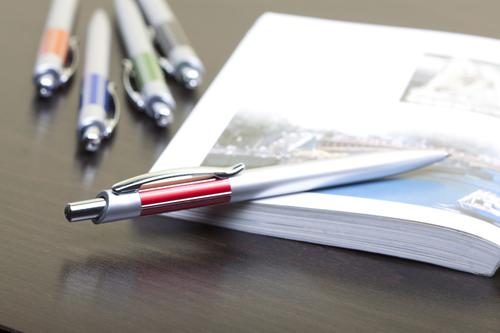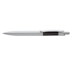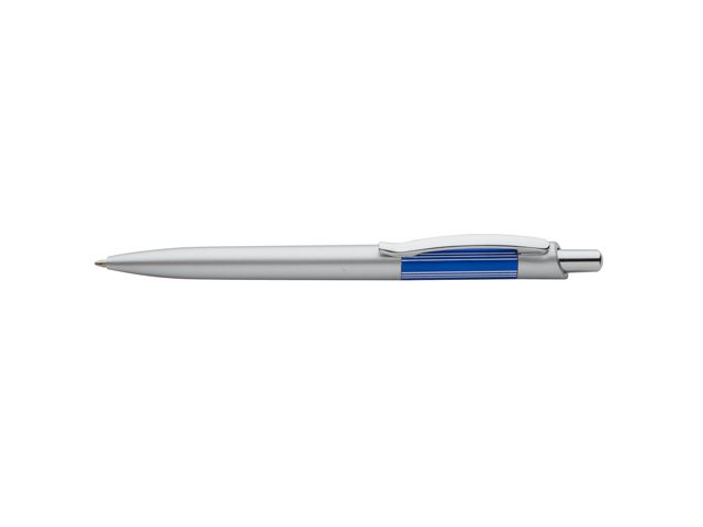 Pix "Glame" din plastic, cu corp argintiu, partea colorata din aluminiu si clips metalic. Se livreaza cu mina albastra.
