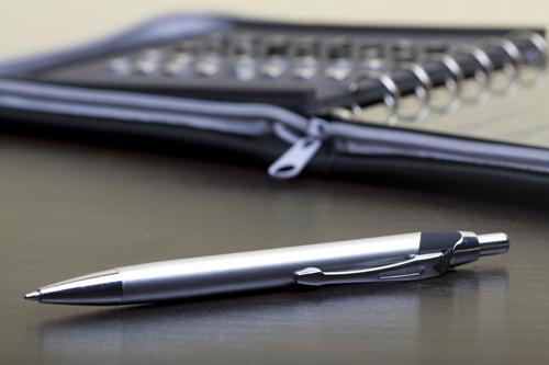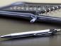 Pixuri din plastic cu finisaje metalice avand clipsul si butonul cromate.