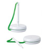 Pix "Zozy" din plastic pe suport rotund de birou. Pixul are pasta albastra. Personalizare: led UV