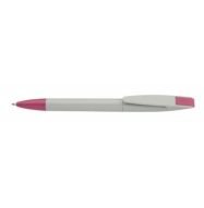 Pixuri "Hermes" din plastic cu grip argintiu si jumatatea superioara colorata. Pixul are pasta de culoare ...