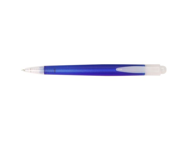 Pixuri "Casper" din plastic semitransparent cu clips, varf si buton albe. Cu pasta albastra