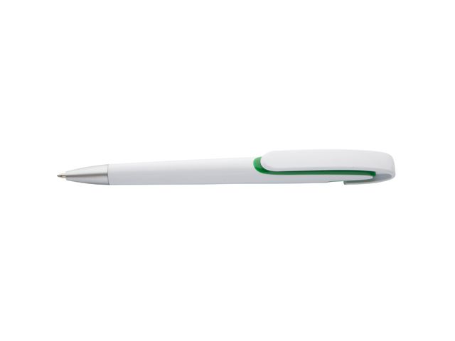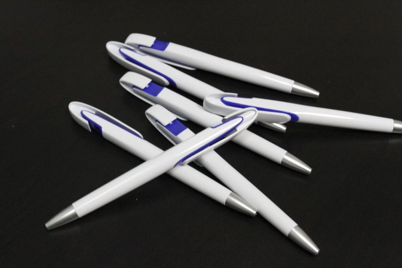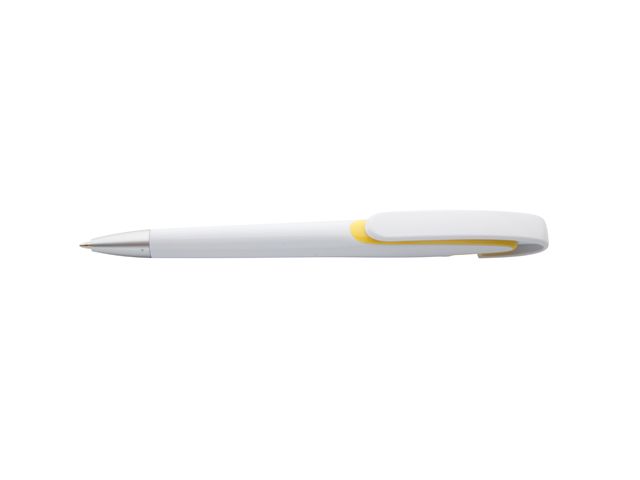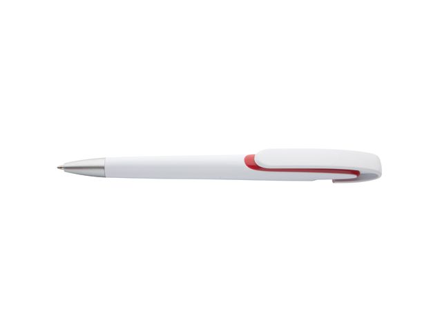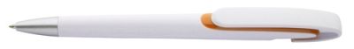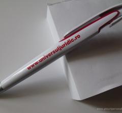 Pixuri personalizate din plastic alb cu insertii elegante colorate. Pixuri cu clips lat si generos ce reprezinta o suprafata mare de personalizare.