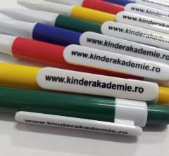 Pixuri personalizate prin serigrafie, tampografie sau imprimare policromie LED UV.