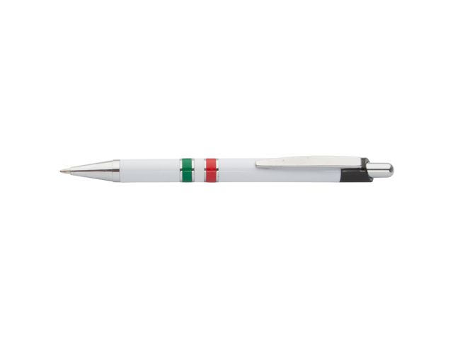 Pix "National" avand inele colorate in steagul Italiei. Pixuri din plastic, corp alb, clips si varf cromate. Se livreza cu pasta albastra.