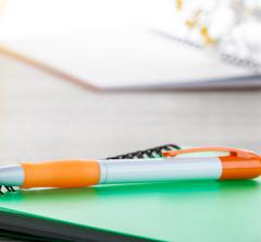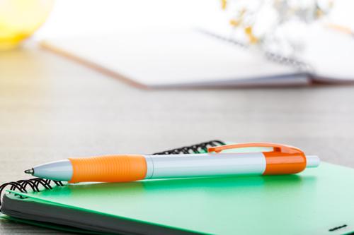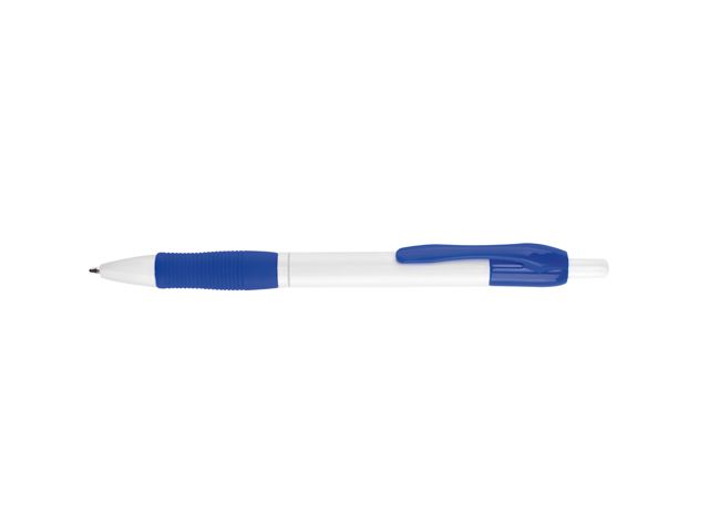 Pix din plastic cu clip si dispozitiv de prindere colorat acesta avand pasta de culoare albastra.