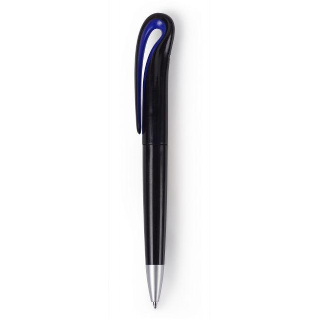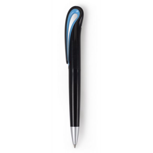 Pix din plastic cu corp negru si insertii colorate. Acesta are clips rotunjit ce permite imprimarea si varf argintiu.Pasta este de culoare neagra.