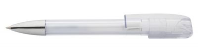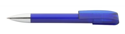 Pix "Chute" din plastic transparent cu insertii cromate si pasta de culoare albastra.