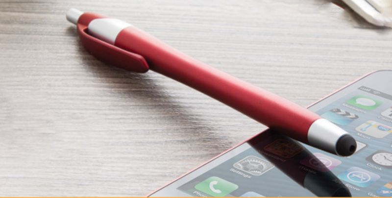 Pix "Naitel" din plastic cu stylus pentru touch screen in varf si insertii argintii pentru un aspect elegant. Pixul are mină de culoare albastra si clips care poate fi personalizat.