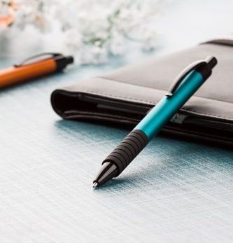 Pix din plastic cu corp de culoare metalizata avand varful , cauciucul si clipsul negru. Acesta se livreaza cu pasta albastra.