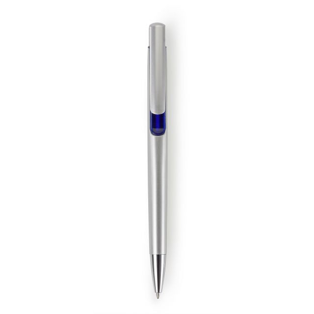 Pix din plastic argintiu cu insertii colorate si varf cromat. Clipsul rectangular permite imprimarea. Se livreaza cu pasta de culoare albastra.