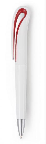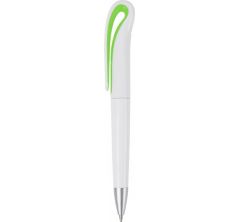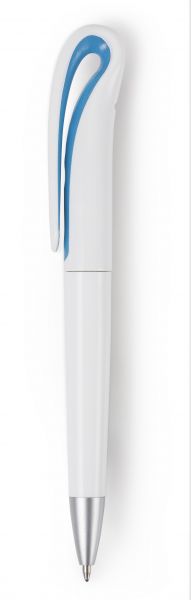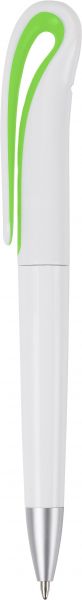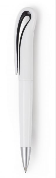 Pix White Waver din plastic cu insertii colorate. Pixul are varful argintiu si clipsul lat ce poate fi personalizat. Pasta pixului este de culoare neagra.