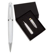 Pix metalic cu insertii cromate si cu mina albastra. Pixul este dotat cu un stick de memorie de 4GB. Pixul se ...
