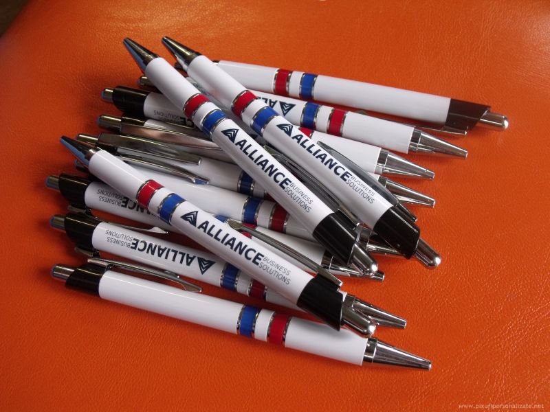 Pixuri personalizate din plastic avand corpul alb, manson [..]