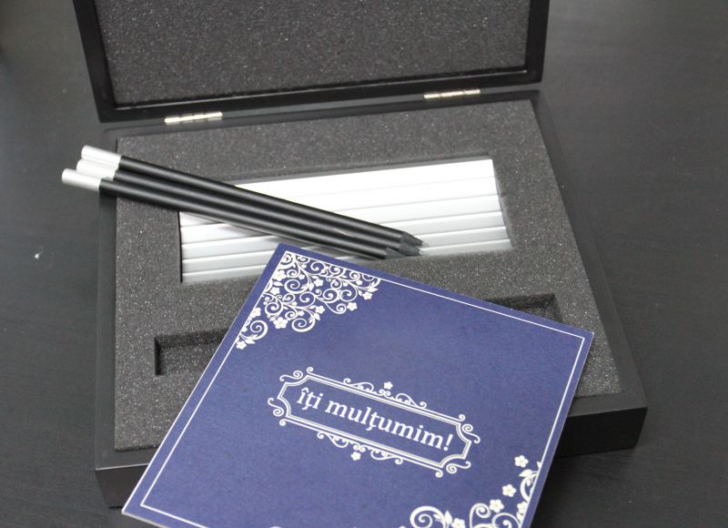 Set "Madeira" elegant, André Philippe care contine: trei creioane si un stativ, in cutie neagra din lemn, cadou.