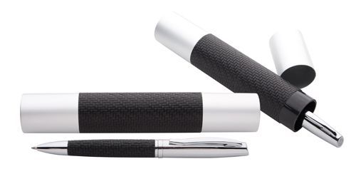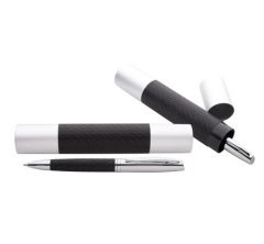 Pix "Lannion" metalic, elegant, cu invelis din inlocuitor de piele cu clip cromat.In cutie neagra de cadou din inlocuitor piele. Marca André Philippe. Acesta are mina albastra.