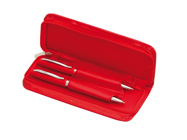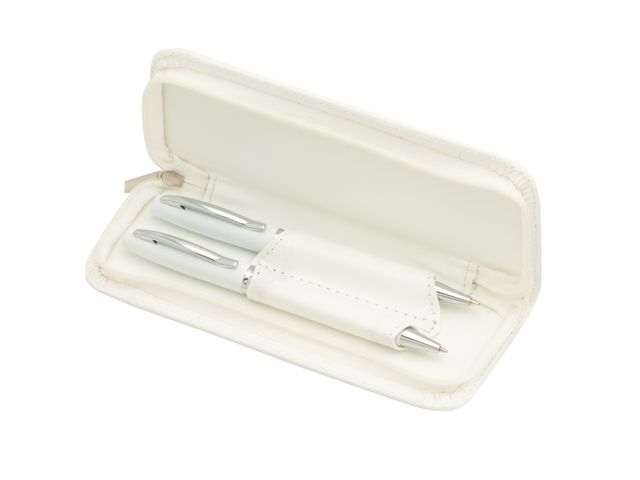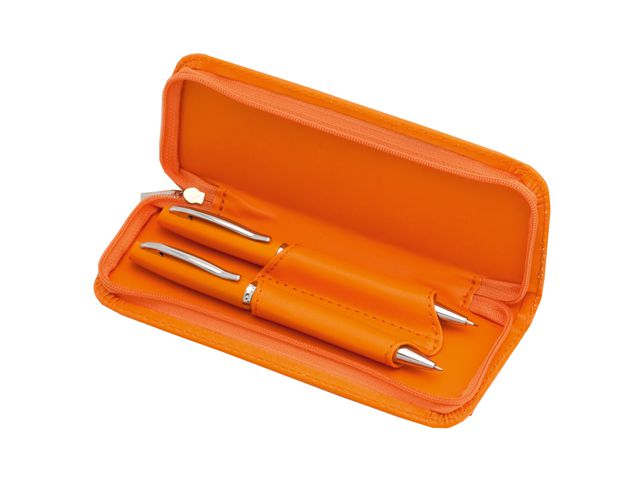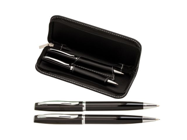 Set elegant format din pix metalic si creion mecanic cu mina 0.7 mm in penar realizat din imitatie de piele, asortat la culoarea instrumentelor de scris.