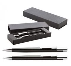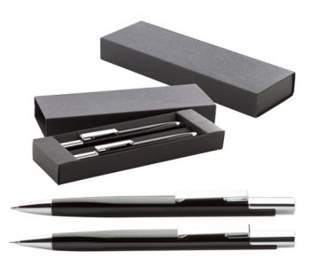 Set "Glamy" din aluminiu si plastic in cutie din carton negru. Setul contine: un pix cu mina albastra si un creion mecanic cu mina de 0.7mm.