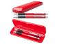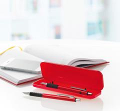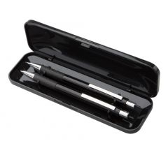 Set de scris compus din pix (cu pasta de culoare albastra) si creion mecanic (cu mina de 0,7mm) cu clips in cutie cadou de plastic .